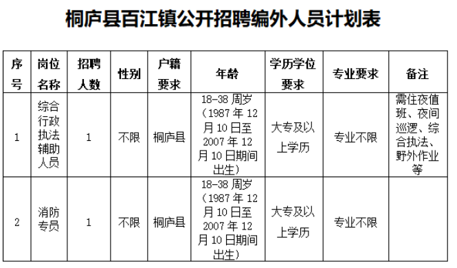 桐庐县百江镇公开招聘编外工作人员公告。
