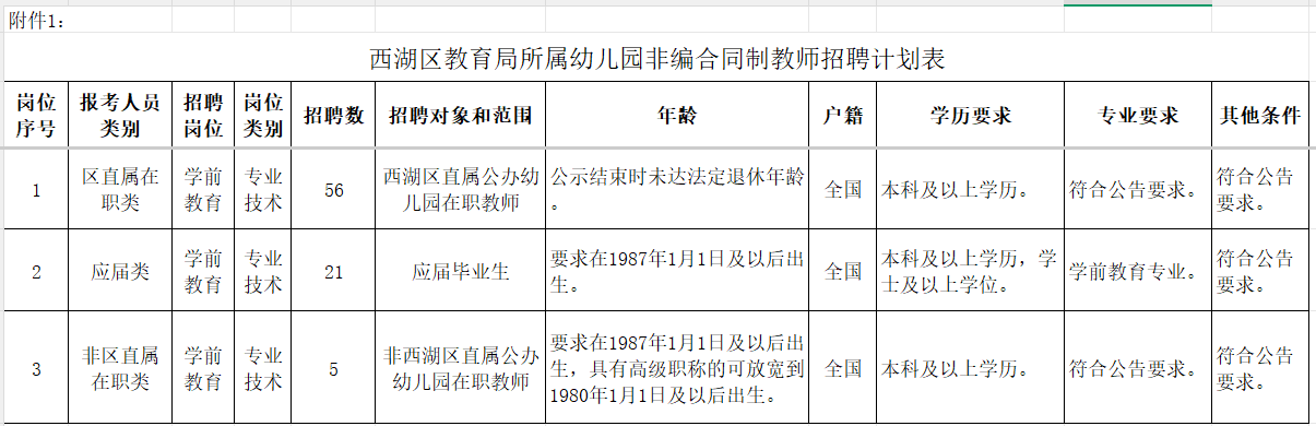杭州市西湖区2026年度幼儿园非编合同制教师公开招聘公告。