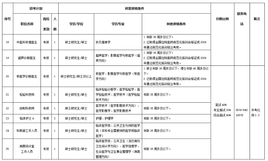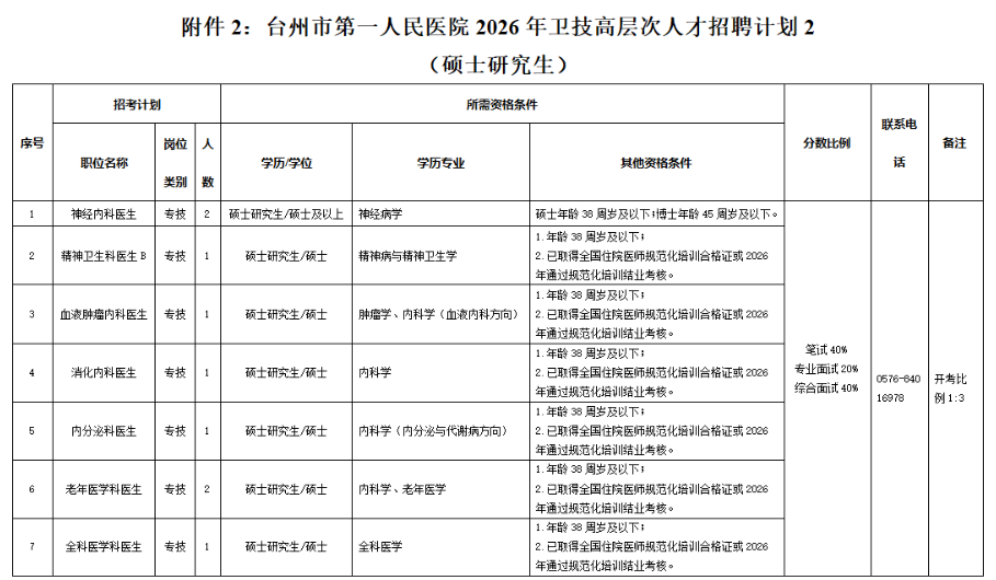 台州市第一人民医院2026年高层次卫技人才公开招聘公告。