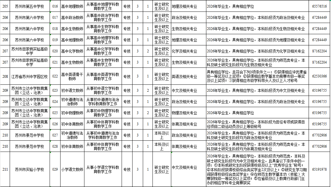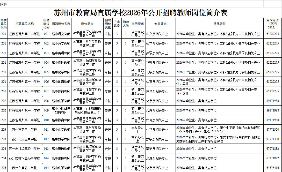 苏州市教育局直属学校2026年公开招聘教师公告。