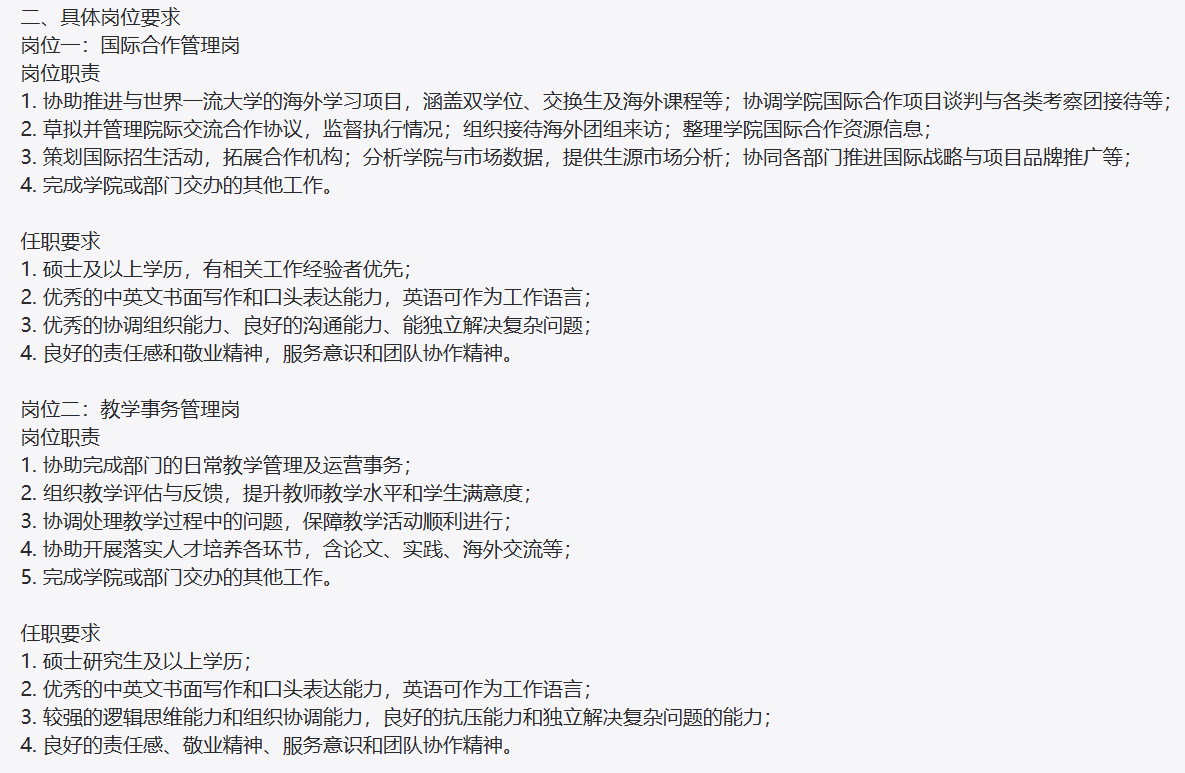 劳务派遣人员招聘(派遣至浙江大学国际联合商学院)。