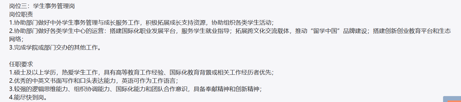 2、岗位要求:工作认真负责,能吃苦耐劳,有财务工作经验或文字材料能力优先。