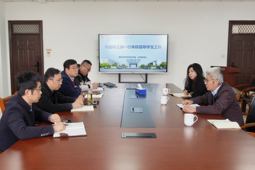 3 月 19 日,研究生院院长胡文军、研工部部长傅晓萍一行赴医学院(护理学院),围绕临床医学、护理等专业研究生的日常教学、专业实践、安全教育及人文关怀等工作开展调研。医学院(护理学院)党委书记甘顺良,副院长周洪昌、沈建通等陪同调研,并就研究生日常管理、安全网格设置、实践教学模式等相关工作作具体介绍。