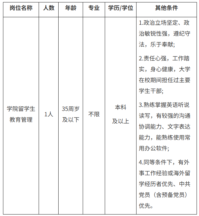 (一)招聘人数:1人
