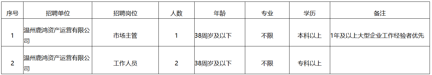 网上报名:填写《温州鹿鸿资产运营有限公司面向社会公开招聘工作人员报名表》(附件)与各层次学历学位证书、身份证、职称资格证书、获奖证书、个人履历表等原件扫描件,发送至相应邮箱。