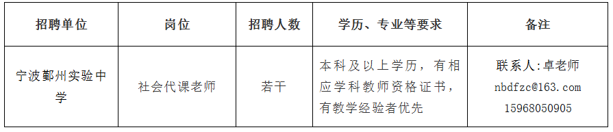 宁波市鄞州区公立学校招聘编外员工简章。
